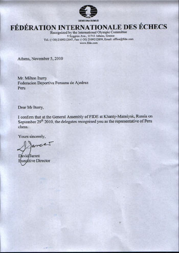 LA FIDE RATIFICA EL RECONOCIMIENTO A MILTON ITURRY DE PERU |